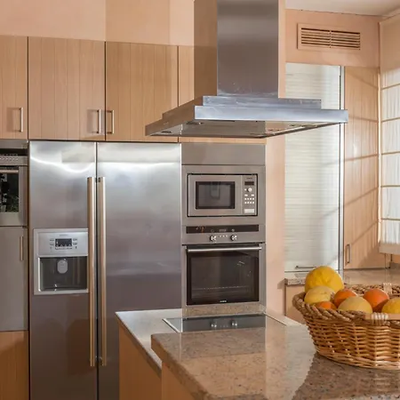 В некоторых комнатах также есть полностью оборудованная кухня с микроволновой печью, холодильником и посудомоечной машиной.